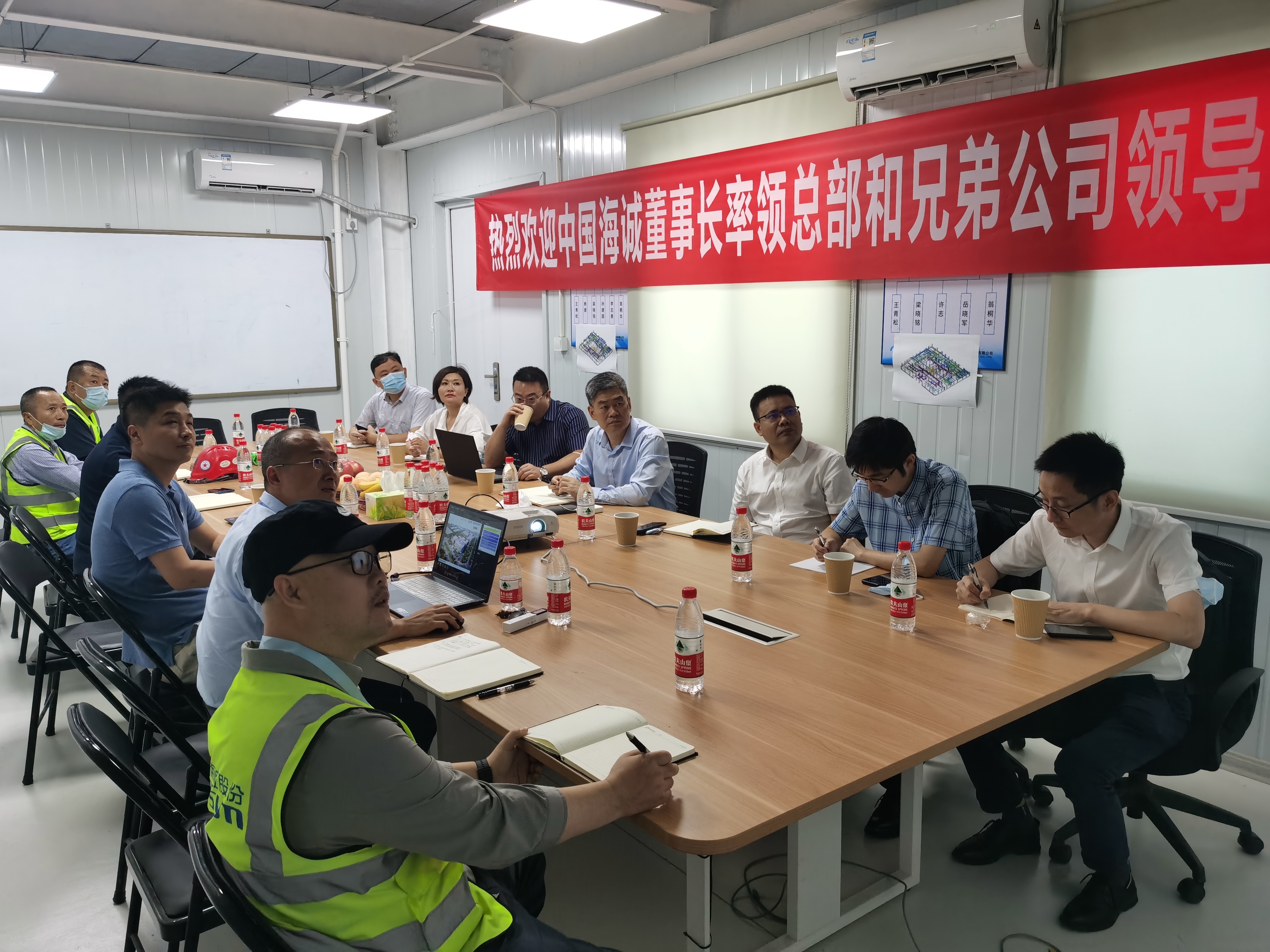 Zhao Guoang and his delegation heard the detailed reports of the project overview, preliminary negotiations and current project situations from Ying Chao, Assistant General Manager, Pan Xin, Project Manager, etc. He paid condolences to the project team away from home for sticking to the project under high temperatures. He affirmed the achievements made by the headquarters in the chemical paint industry, and stressed the need to ensure the progress of the project and improve its risk-resistance while ensuring safety. As an EPC provider, we must adhere to the client-oriented principle, give full play to the professional expertise of Haisum, provide prominent services in full consideration to clients, spread the Haisum brand, cultivate the market, and train the team.