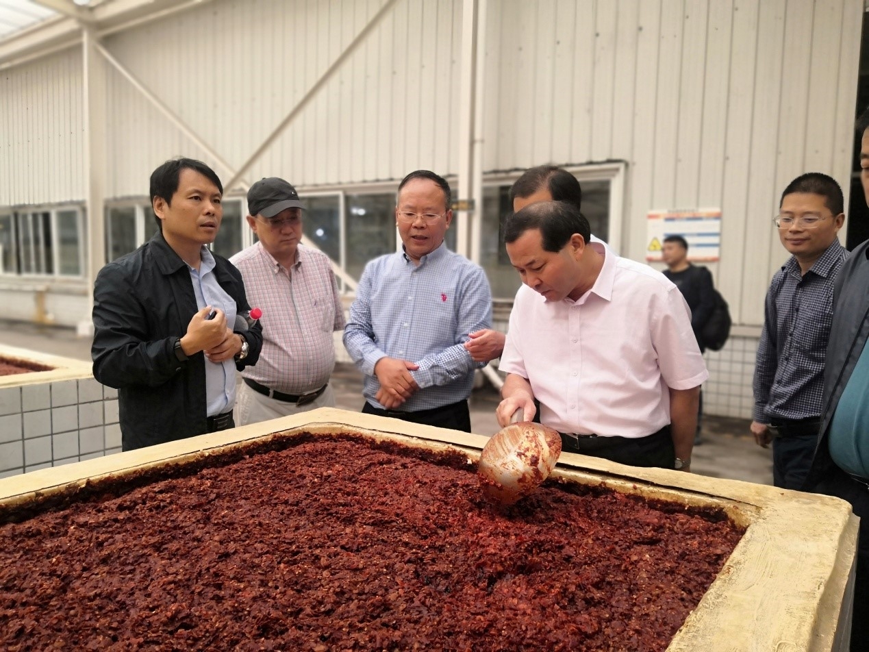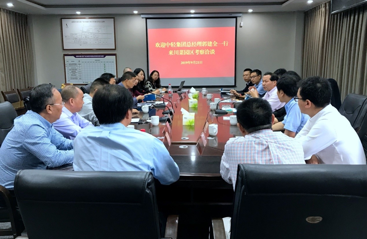 9月20日至22日,中輕集團(tuán)總經(jīng)理郭建全、食品院總經(jīng)理董建輝等一行分別赴邛崍、郫都、什邡等地,考察了當(dāng)?shù)匕拙啤⑹称沸袠I(yè)相關(guān)企業(yè),并與當(dāng)?shù)卣?、園區(qū)管委會等主要領(lǐng)導(dǎo)進(jìn)行會談。海誠股份中輕成都公司董事長崔玉琦、總經(jīng)理王康健陪同考察。