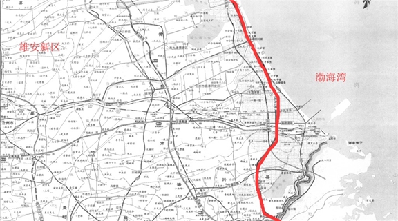公路全長66.372公里,全線采用雙向四車道一級(jí)公路標(biāo)準(zhǔn)建設(shè),設(shè)計(jì)速度為 80 公里/小時(shí),全線共設(shè)特大橋 1341.16m/1 座(河北段長 690.58m),大橋 2349.36m/10 座,中橋 823.65 米/13 座;小橋 177.55 米/8 座,涵洞 98 道。該項(xiàng)目是雄安新區(qū)規(guī)劃打造新區(qū)出??谂涮醉?xiàng)目,是 “構(gòu)建快捷高效交通網(wǎng)、打造綠色交通體系”任務(wù)的重要一環(huán)。