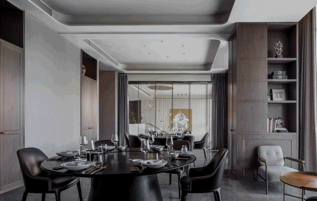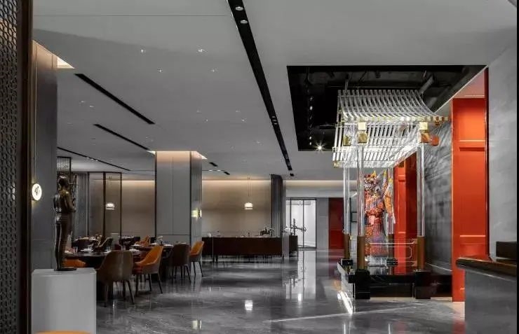 一步一景,一眼一畫(huà),隨著動(dòng)線從大堂進(jìn)入主餐廳,中國(guó)紅在餐廳暈染開(kāi)來(lái),點(diǎn)綴鑲嵌于門(mén)上,掛畫(huà)間,飾品處,在整體暖高級(jí)灰的主色調(diào)下鋪以純正的京紅反而映襯出鬧中取靜的東方之魂。