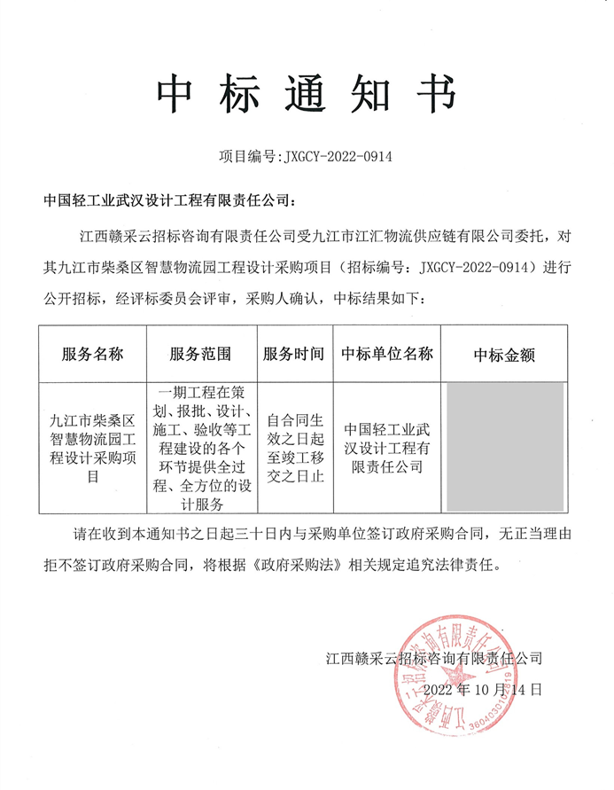 ·中標(biāo)九江市柴桑區(qū)智慧物流園工程設(shè)計項目