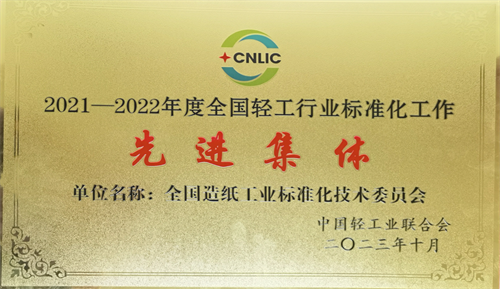中國制漿造紙研究院榮獲“2021-2022年度全國輕工行業(yè)標準化工作先進單位”稱號;作為秘書處承擔單位運營的全國造紙工業(yè)標準化委員會榮獲“2021—2022年度全國輕工行業(yè)標準化工作先進集體”稱號。