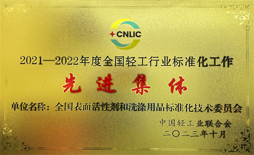 中國日用化學研究院作為秘書處承擔單位運營的全國表面活性劑和洗滌用品標準化技術委員會榮獲“2021-2022年度全國輕工行業(yè)標準化工作先進集體”稱號。
