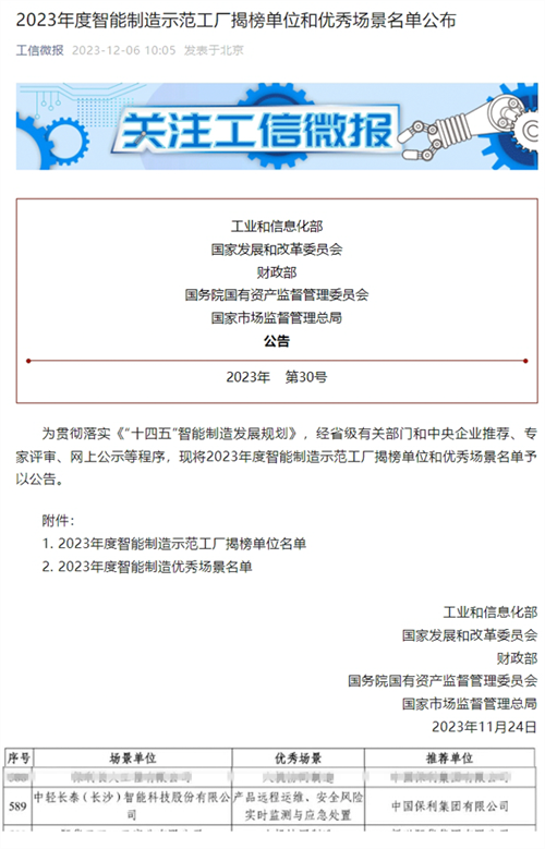 近日,工業(yè)和信息化部公布“2023年度智能制造示范工廠揭榜單位和優(yōu)秀場(chǎng)景名單”。保利中輕所屬中輕長(zhǎng)泰研發(fā)的“產(chǎn)品遠(yuǎn)程運(yùn)維”和“安全風(fēng)險(xiǎn)實(shí)時(shí)監(jiān)測(cè)與應(yīng)急處置”成功入選智能制造優(yōu)秀場(chǎng)景名單,凸顯中輕長(zhǎng)泰在智能制造領(lǐng)域的顯著成績(jī)。