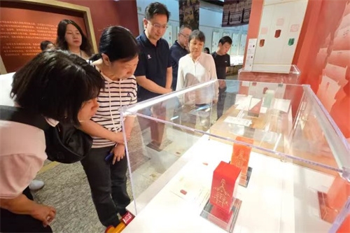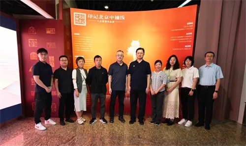 參觀中,大家認(rèn)真聆聽講解,仔細(xì)觀摩展品。一枚枚精美別致的印章,將新材料與篆刻文化完美融合,玻璃微珠、先進(jìn)陶瓷、復(fù)合材料、特種水泥、碲化鎘發(fā)電玻璃等新材料印章讓人應(yīng)接不暇,生動展現(xiàn)了北京老城永定門到鐘鼓樓15個核心遺產(chǎn)景觀、建筑布局和歷史文化價值。在感受大眾篆刻藝術(shù)無窮魅力的同時,仿佛置身于北京中軸線氣勢恢宏、秩序井然的城市建筑群中,深刻感受北京中軸線作為城市文化脊梁的重要意義。