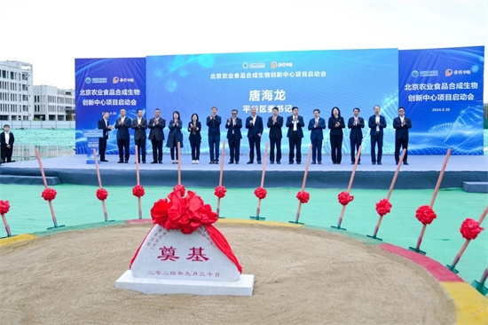 中國食品發(fā)酵工業(yè)研究院黨委書記、總經(jīng)理郭新光代表建設運營單位發(fā)言,項目管理單位和施工單位分別作表態(tài)發(fā)言。平谷區(qū)委書記唐海龍宣布項目開工,集團領導與市區(qū)兩級領導嘉賓共同為北京農(nóng)業(yè)食品合成生物創(chuàng)新中心奠基。