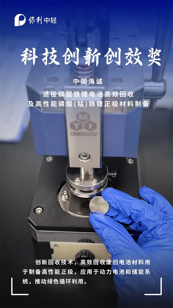 近日,保利集團(tuán)第一屆“青創(chuàng)杯”創(chuàng)新創(chuàng)效大賽結(jié)果公布。中國(guó)食品發(fā)酵工業(yè)研究院(簡(jiǎn)稱“中國(guó)食品院”)開發(fā)的“食品安全標(biāo)準(zhǔn)菌株和標(biāo)準(zhǔn)樣品產(chǎn)業(yè)化應(yīng)用”項(xiàng)目獲成果轉(zhuǎn)化創(chuàng)效獎(jiǎng),中國(guó)海誠(chéng)開發(fā)的“退役磷酸鐵鋰電池高效回收及高性能磷酸(錳)鐵鋰正極材料制備”項(xiàng)目獲科技創(chuàng)新創(chuàng)效獎(jiǎng)。此次獲獎(jiǎng)再次彰顯保利中輕在科技創(chuàng)新工作方面的顯著成效??靵韲^,一起為他們打call!