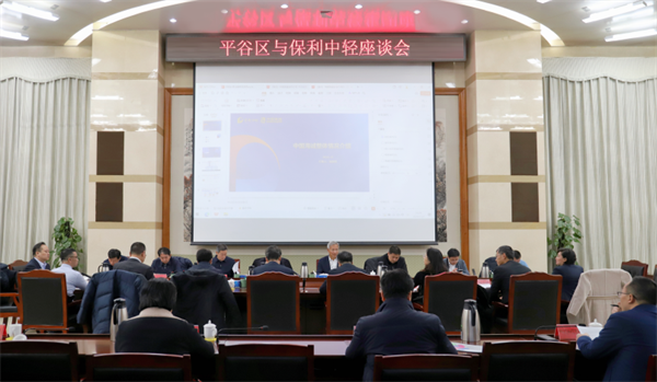 12月2日,保利集團(tuán)總經(jīng)理助理,保利中輕黨委書記、董事長安勝杰一行與北京市平谷區(qū)委書記唐海龍,區(qū)委副書記、區(qū)長狄濤等座談交流。保利中輕副總經(jīng)理,中國海誠黨委書記、董事長趙國昂;保利中輕副總經(jīng)理張曦,中國海誠、中輕長泰相關(guān)負(fù)責(zé)人,平谷區(qū)政府黨組成員彭石,區(qū)政府相關(guān)部門負(fù)責(zé)人參加座談。