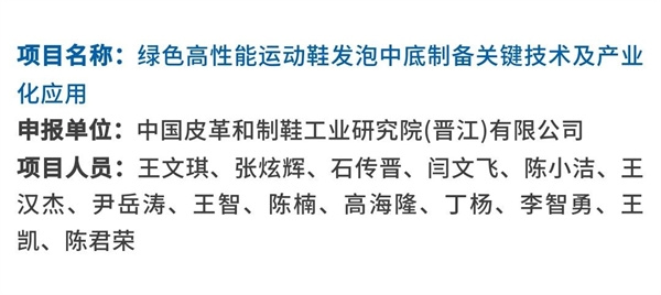 中國(guó)皮革制鞋院晉江公司申報(bào)的“綠色高性能運(yùn)動(dòng)鞋發(fā)泡中底制備關(guān)鍵技術(shù)及產(chǎn)業(yè)化應(yīng)用”項(xiàng)目,以典型鞋用EVA和TPU彈性體為基體,開(kāi)展了綠色高性能運(yùn)動(dòng)鞋發(fā)泡中底制備關(guān)鍵技術(shù)及產(chǎn)業(yè)化應(yīng)用相關(guān)工作,揭示了相關(guān)材料改性調(diào)控機(jī)制、內(nèi)在發(fā)泡行為及作用機(jī)理。項(xiàng)目成果填補(bǔ)了制鞋行業(yè)在發(fā)泡EVA中底和生物質(zhì)改性TPU中底領(lǐng)域空白。