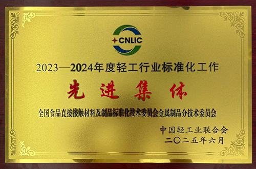 中國(guó)食品發(fā)酵工業(yè)研究院承擔(dān)秘書(shū)處單位的全國(guó)食品直接接觸材料及制品標(biāo)準(zhǔn)化技術(shù)委員會(huì)金屬制品分技術(shù)委員會(huì)獲得023—2024年度輕工行業(yè)標(biāo)準(zhǔn)化工作先進(jìn)集體”榮譽(yù)稱(chēng)號(hào)。