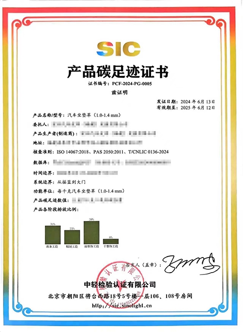 中輕檢驗頒發(fā)的《產(chǎn)品碳足跡證書》