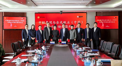 1月21日,保利中輕與金光紙業(yè)(中國)投資有限公司(簡稱“APP(中國)”)在北京簽署戰(zhàn)略合作協(xié)議。保利中輕黨委副書記、總經(jīng)理趙國昂,金光集團(tuán)APP副總裁翟京麗代表雙方簽約,并就雙方在科技研發(fā)、智能制造、市場拓展等方面深化合作展開交流。簽約儀式由保利中輕副總經(jīng)理孫波主持。