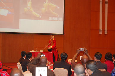 聯(lián)歡會(huì)上,由中食院工會(huì)牽頭組織的來自院科技發(fā)展部、物業(yè)部、財(cái)務(wù)部和食品、發(fā)酵、國際合作等各部門工作人員表演的扇子舞及變臉、茶藝、抖空竹等節(jié)目精彩紛呈,博得了全場(chǎng)觀眾的陣陣掌聲。學(xué)員們也通過自編自演的節(jié)目表達(dá)了對(duì)主辦單位、承辦單位的感激之情和中國人民的深厚情誼。商務(wù)部、集團(tuán)公司和院領(lǐng)導(dǎo)主持的現(xiàn)場(chǎng)抽獎(jiǎng)活動(dòng)將晚會(huì)推向高潮,2個(gè)小時(shí)的晚會(huì)在熱烈友好的氣氛中圓滿結(jié)束。