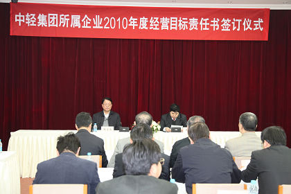 中國輕工集團公司所屬企業(yè)2010年度經(jīng)營目標責任書簽訂儀式于3月30日在集團總部舉行,集團公司領導、集團公司部門負責人、二級企業(yè)主要負責人出席了儀式。