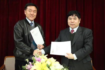 陳鄂生總經(jīng)理與皮革院院長楊承杰簽訂經(jīng)營目標責任書