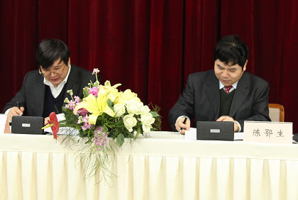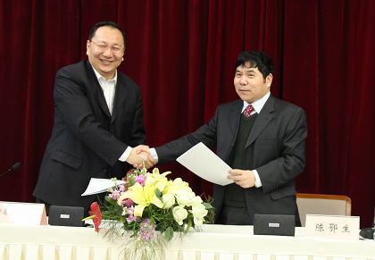 陳鄂生總經(jīng)理與日化院院長王萬緒簽訂經(jīng)營目標責任書