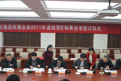 俞海星總經(jīng)理與中輕物產(chǎn)公總會(huì)計(jì)師錢(qián)小林簽訂責(zé)任書(shū)