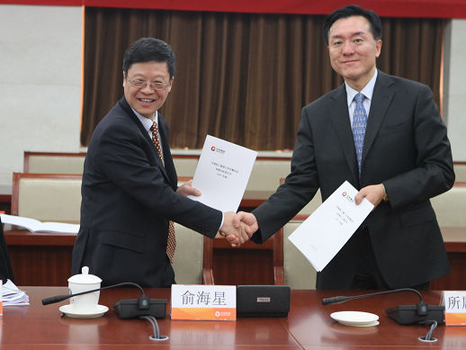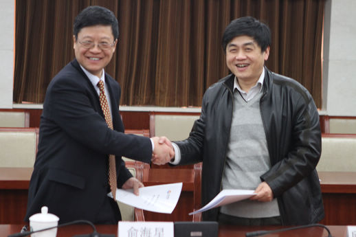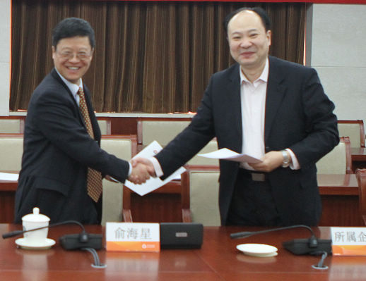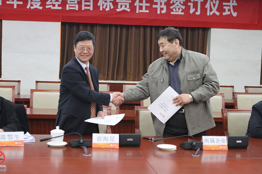 俞海星總經(jīng)理與海誠(chéng)股份總裁嚴(yán)曉?xún)€簽訂責(zé)任書(shū)