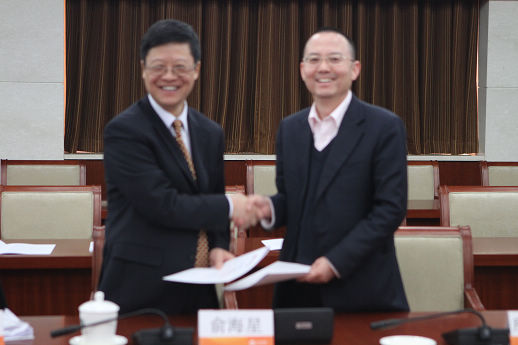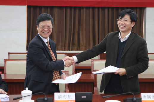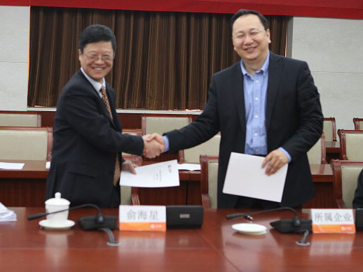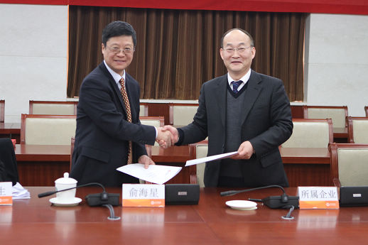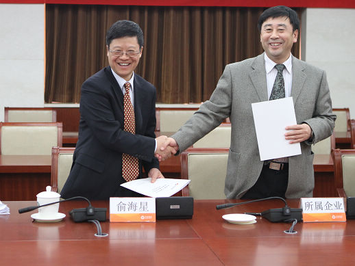 俞海星總經(jīng)理與日化院院長(zhǎng)王萬(wàn)緒簽訂責(zé)任書(shū)