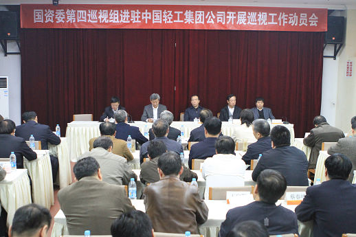 11月15日,“國(guó)資委第四巡視組進(jìn)駐中國(guó)輕工集團(tuán)公司開展巡視工作動(dòng)員會(huì)”在集團(tuán)公司總部召開。國(guó)資委第四巡視組組長(zhǎng)路耀華,國(guó)資委監(jiān)事會(huì)主席尋寰中,國(guó)資委巡視辦副主任宋亞晨,國(guó)資委第四巡視組副組長(zhǎng)熊曉先,國(guó)資委第四巡視組成員尹元、于學(xué)范、陳為群、張慶安、馬洪興、古海云、姚利軍出席會(huì)議,集團(tuán)公司黨政領(lǐng)導(dǎo)班子全體成員,近年退休老領(lǐng)導(dǎo),各部室負(fù)責(zé)人,各二級(jí)公司黨政主要負(fù)責(zé)人,紀(jì)委書記、部分在京職工代表等共60余人參加了動(dòng)員會(huì)。會(huì)議由集團(tuán)公司總經(jīng)理俞海星主持。