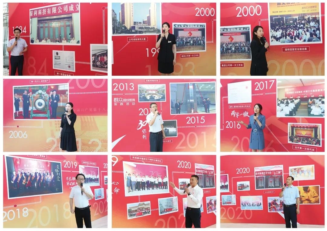 在國歌奏唱聲中,活動(dòng)拉開帷幕。來自不同業(yè)務(wù)板塊的9名黨員接力講述保利故事,在他們的講述下,集團(tuán)公司36年發(fā)展史徐徐展開。