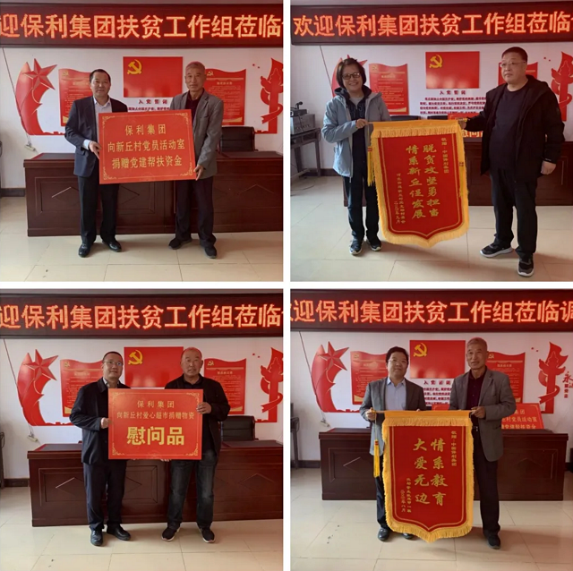 調(diào)研組一行來(lái)到新丘村貧困戶(hù)蘇國(guó)軍家中,向其送上慰問(wèn)品、慰問(wèn)金;實(shí)地考察了保利集團(tuán)在新丘村的產(chǎn)業(yè)扶貧項(xiàng)目育苗基地以及新丘村村委會(huì)、新丘村愛(ài)心超市,并向新丘村捐贈(zèng)幫扶資金及慰問(wèn)品,新丘村黨支部及受助學(xué)生家屬向保利集團(tuán)贈(zèng)送錦旗;參觀了牛家營(yíng)子鎮(zhèn)中藥材產(chǎn)業(yè)基地,詳細(xì)了解其產(chǎn)銷(xiāo)模式。