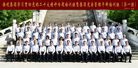 劉化龍作開班動(dòng)員講話并指出,學(xué)習(xí)宣傳貫徹黨的二十大精神,是當(dāng)前和今后一個(gè)時(shí)期的首要政治任務(wù)。黨的二十大召開之后,保利集團(tuán)在全面學(xué)習(xí)、全面把握、全面落實(shí)黨的二十大精神上下真功、求實(shí)效,讓黨的二十大精神成為了保利集團(tuán)爬坡過(guò)坎、擔(dān)當(dāng)作為的強(qiáng)大思想武器。今年4月以來(lái),保利集團(tuán)黨委按照黨中央和國(guó)務(wù)院國(guó)資委部署要求,全面啟動(dòng)學(xué)習(xí)貫徹習(xí)近平新時(shí)代中國(guó)特色社會(huì)主義思想主題教育,組織廣大黨員干部以習(xí)近平新時(shí)代中國(guó)特色社會(huì)主義思想凝心鑄魂,進(jìn)課堂讀原文、下基層找問(wèn)題、立長(zhǎng)遠(yuǎn)促發(fā)展,取得了階段性的成果。