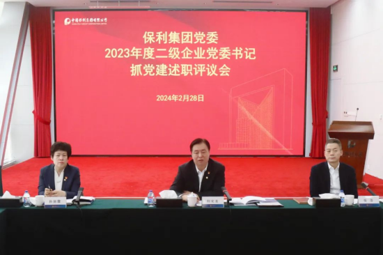 2月28日,保利集團(tuán)黨委在京召開2023年度二級企業(yè)黨委書記黨建工作述職會議暨2024年度黨建責(zé)任書簽署儀式,集團(tuán)公司黨委書記、董事長劉化龍參加會議并講話,黨委常委、紀(jì)委書記孫麗霞參加會議,會議由黨委副書記張浩主持。