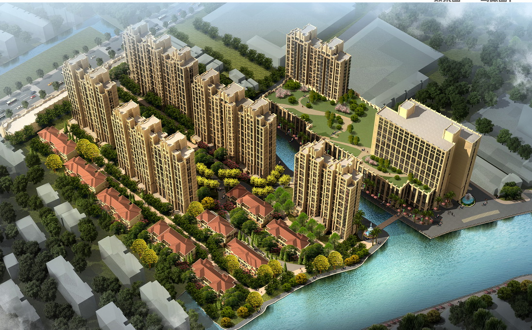 本項(xiàng)目位于上海市松江區(qū),緊鄰松江大學(xué)城,基地面積147586.8㎡,由18棟高層公寓樓、4棟多層公寓樓、28棟低層聯(lián)排住宅、和3個(gè)地下車庫(kù)組成,總建筑面積360053.32㎡。基地中央有一條南北向規(guī)劃道路將基地分為東、西兩塊,東側(cè)為高層區(qū)、西側(cè)為低多層區(qū)。