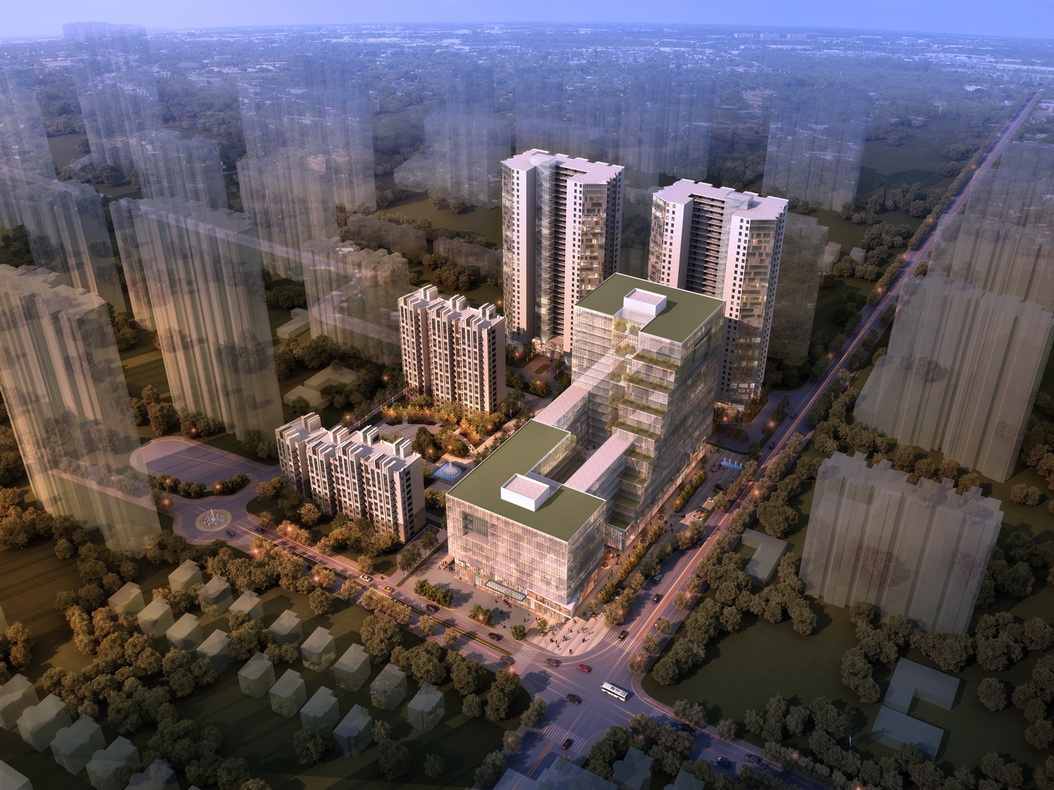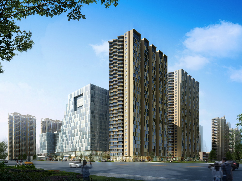 本項目位于江蘇昆山花橋,曹安路與兆豐路交匯處,是昆山市重點開發(fā)區(qū)域之一。本項目的規(guī)劃設(shè)計在功能結(jié)構(gòu)與布局上,在城市總體規(guī)劃的引導(dǎo)下,積極引入城市設(shè)計的內(nèi)容,發(fā)揮建筑設(shè)計及環(huán)境設(shè)計的能動作用。本工程為商住混合用地,主要含4棟高層住宅樓、一棟商業(yè)辦公綜合樓?;赜玫孛娣e31438.4㎡,容積率4.96,地上計容總建筑面積156267㎡。地下總建筑面積約27590㎡。